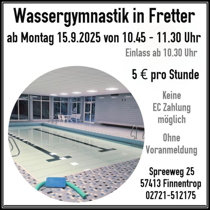 Ab heute startet die Aqua Fitness im Lehrschwimmbad Fretter.